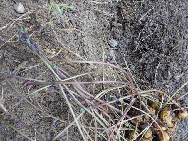 Potatisplanteringen i Sälen blir ett riktigt experiment. Potatisen är stackars bortglömda potatisar med halvmeterlånga groddar, där det redan börjat bildas blast.