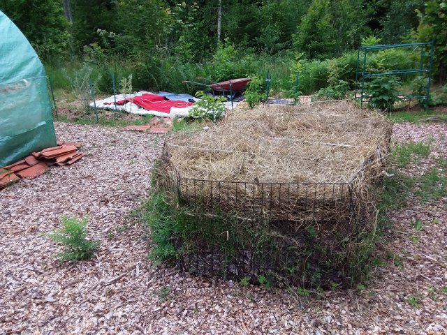 Odlingsbädden ”Sälen” ser ut som en strandad säl, mitt mellan Odlingstunneln och car-porten, därav namnet. Formen styrdes av stubbar som jag ville gömma. Den förbereddes redan förra säsongen (läs mer här) och har stått och väntat på omvårdnad fram till häromdagen. Då tog jag itu med detta projekt.