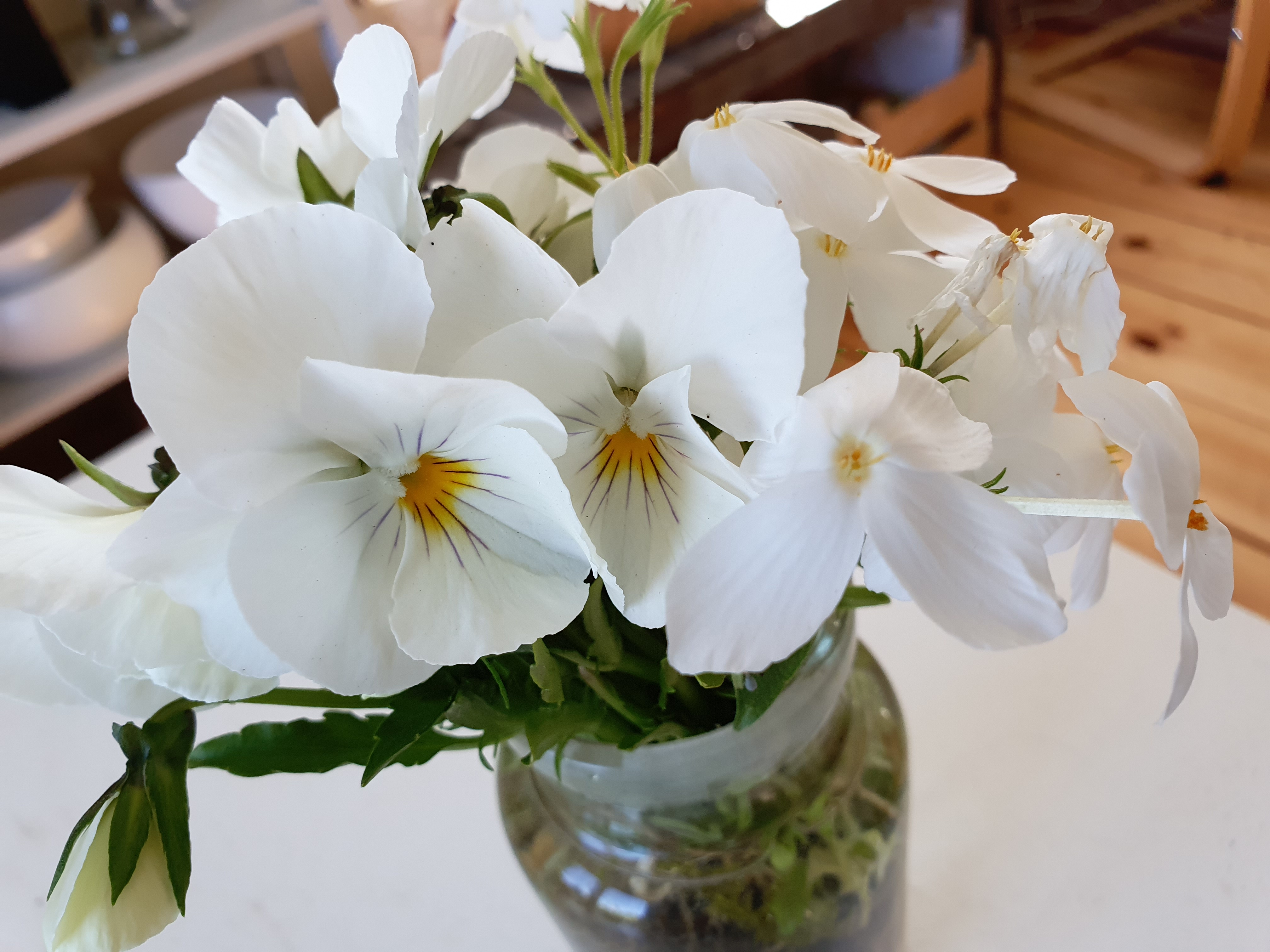 Fredagsbuketten – vit krypflox och vit pensé