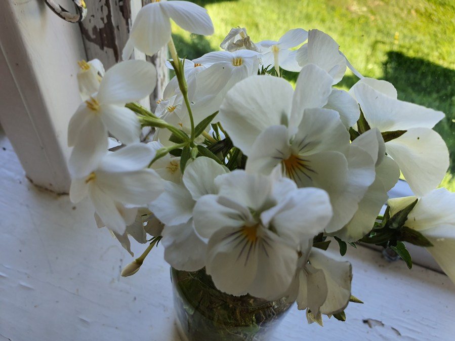 Fredagsbuketten – vit krypflox och vit pensé