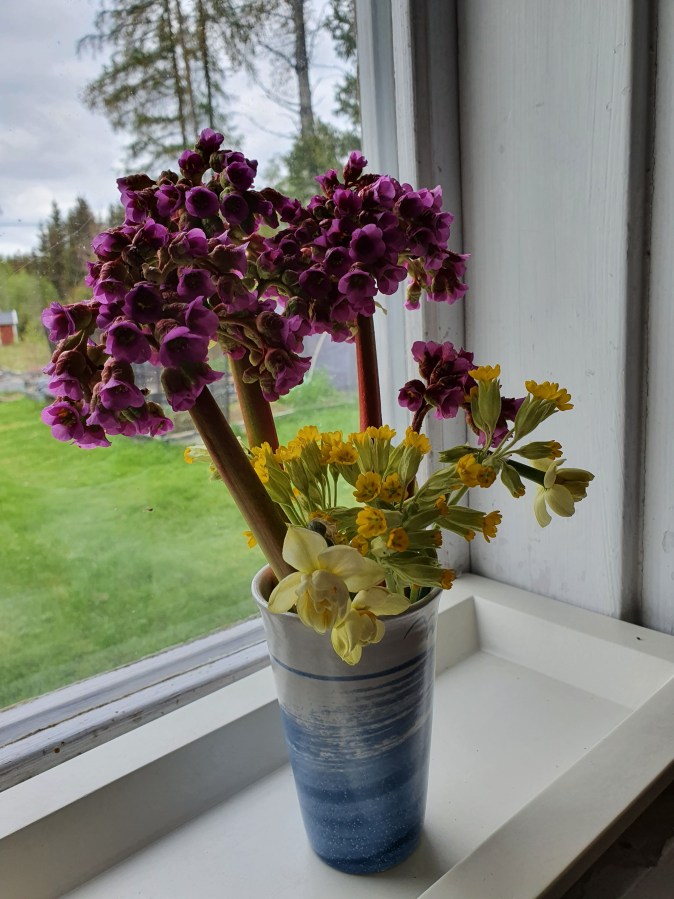 Fredagsbuketten – Bergenia, Gullviva och Narciss