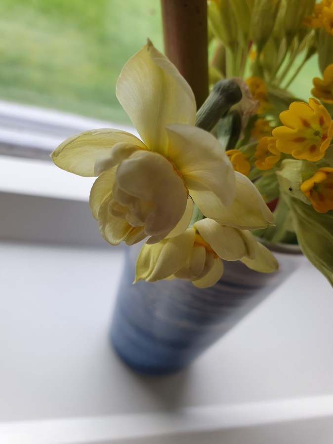 Fredagsbuketten – Bergenia, Gullviva och Narciss