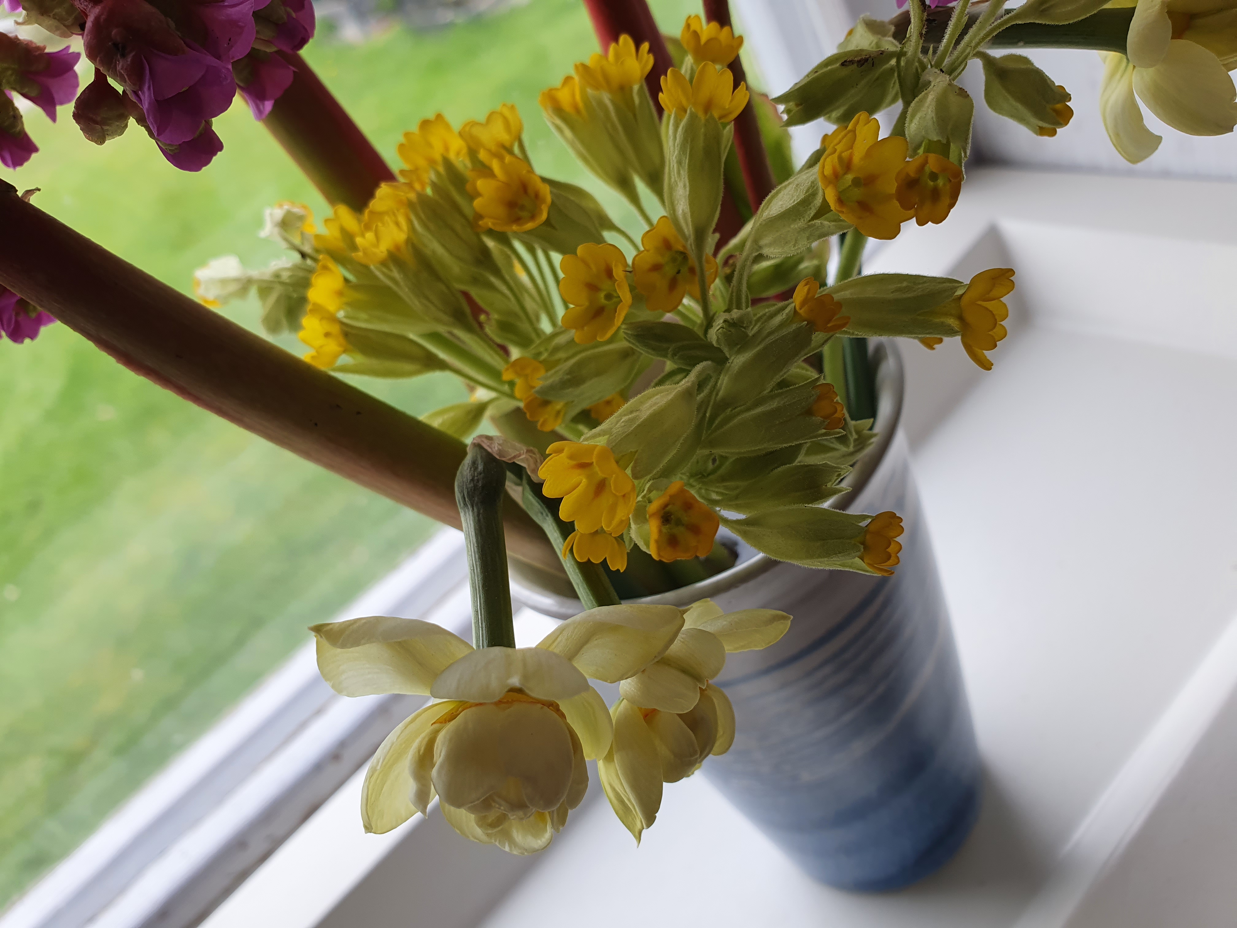 Fredagsbuketten – Bergenia, Gullviva och Narciss