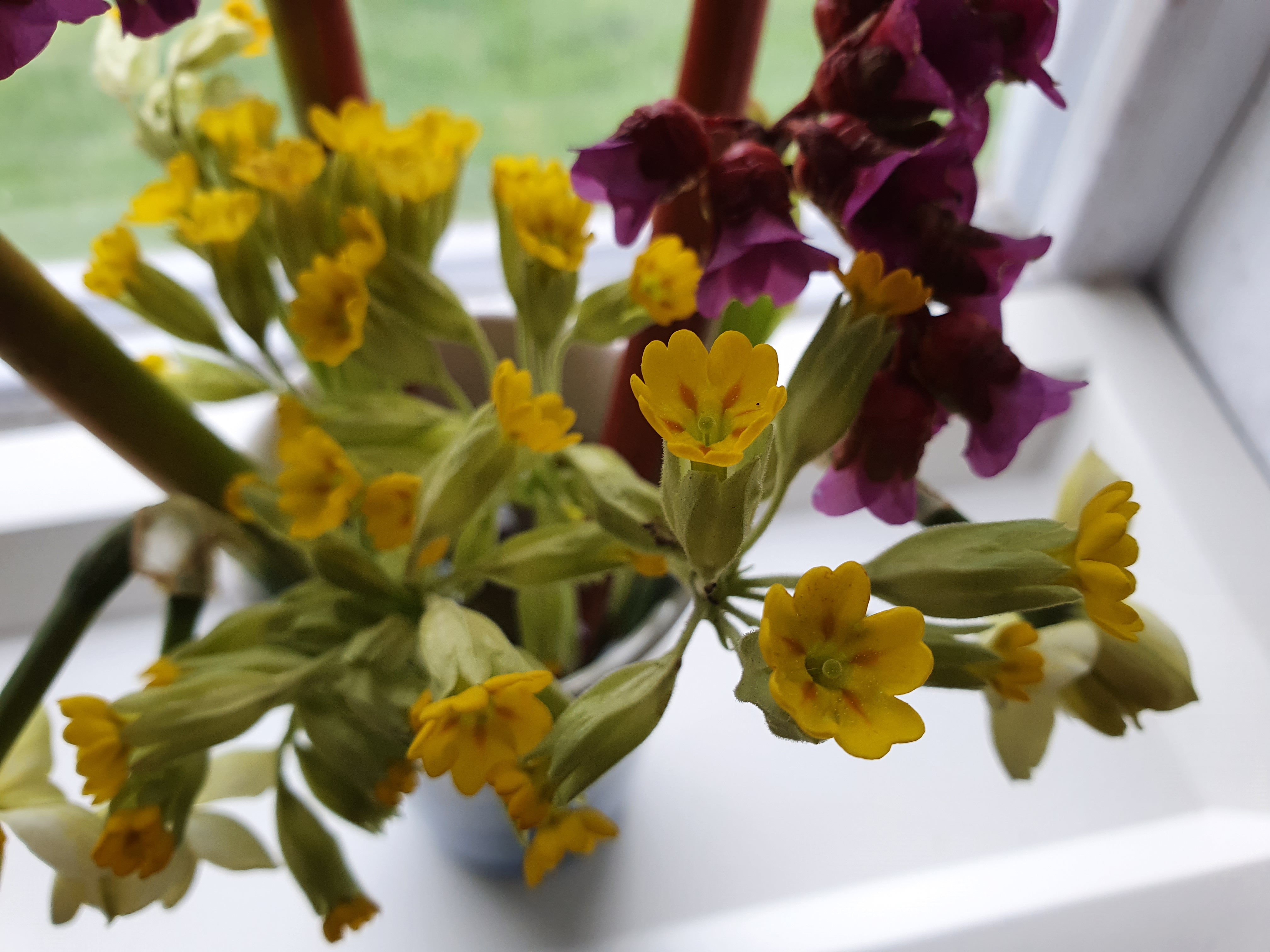 Fredagsbuketten – Bergenia, Gullviva och Narciss