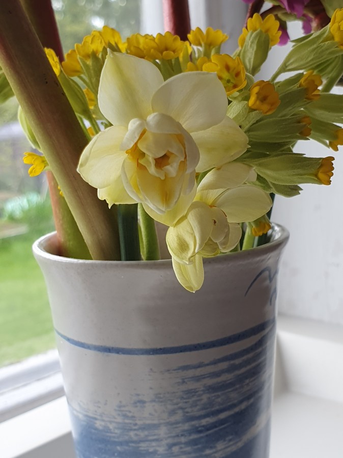 Fredagsbuketten – Bergenia, Gullviva och Narciss