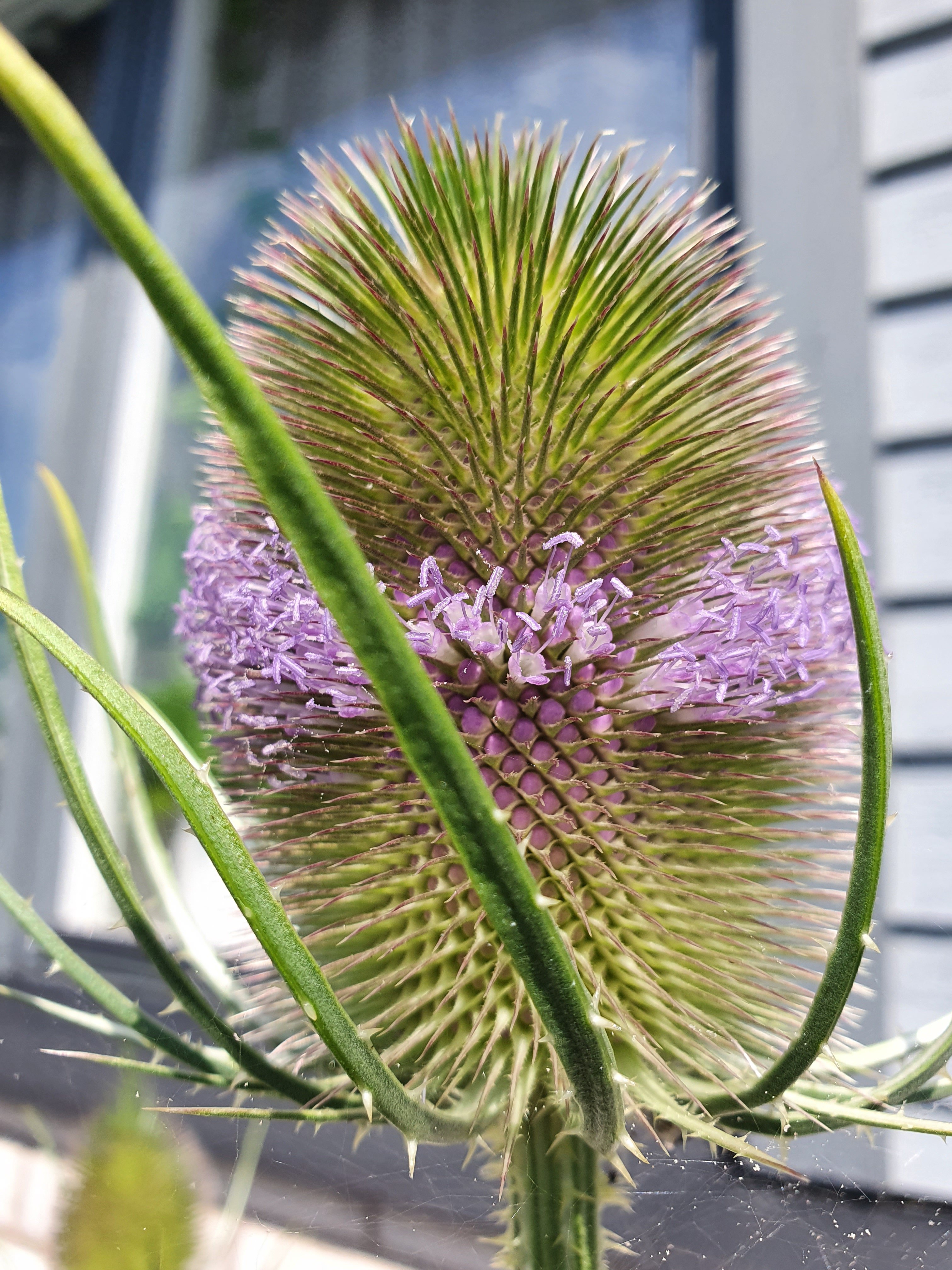 Från början sådde jag Kardvädd på Evatorp så fröerna måste ha kommit med jord eller växter därifrån. Första året blir det bara en (taggig) bladrosett, men andra året kommer bollarna med de fina små blommorna.