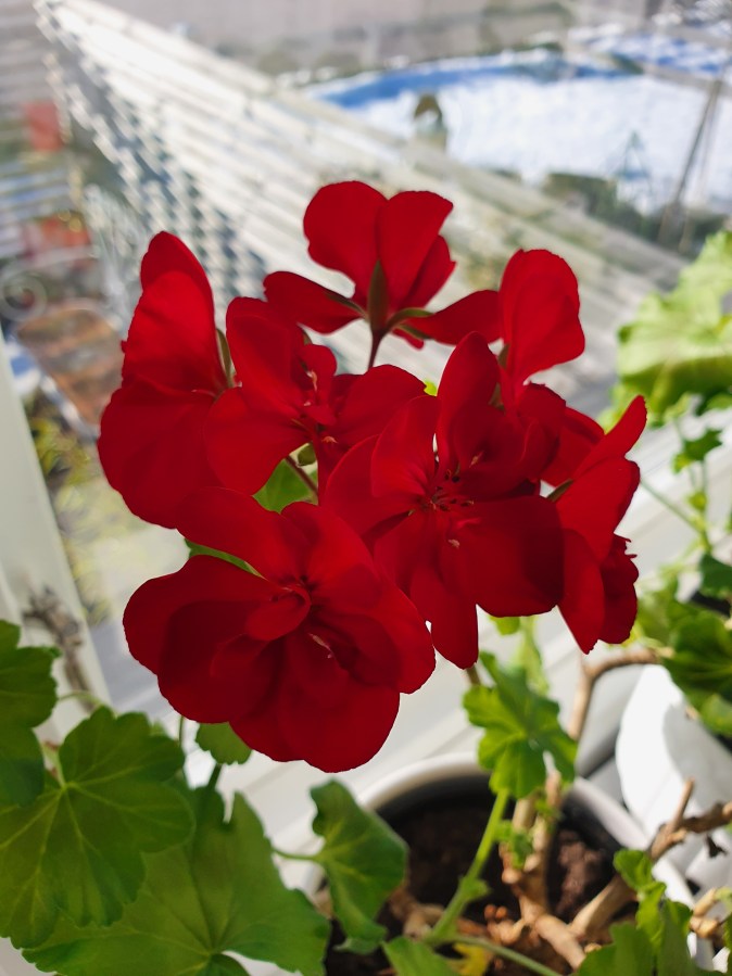 Fredagsbuketten – röda rester från julen och en röd hälsning från pelargonerna