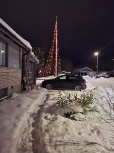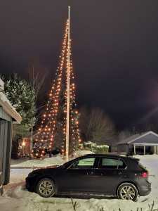 Ett av målen med att skaffa en flaggstång i trädgården på Villa Linnea var att ha en flaggstångs-dekoration i form av en ”gran” under julen/vintern, förutom att kunna hissa flaggan vid alla högtider.